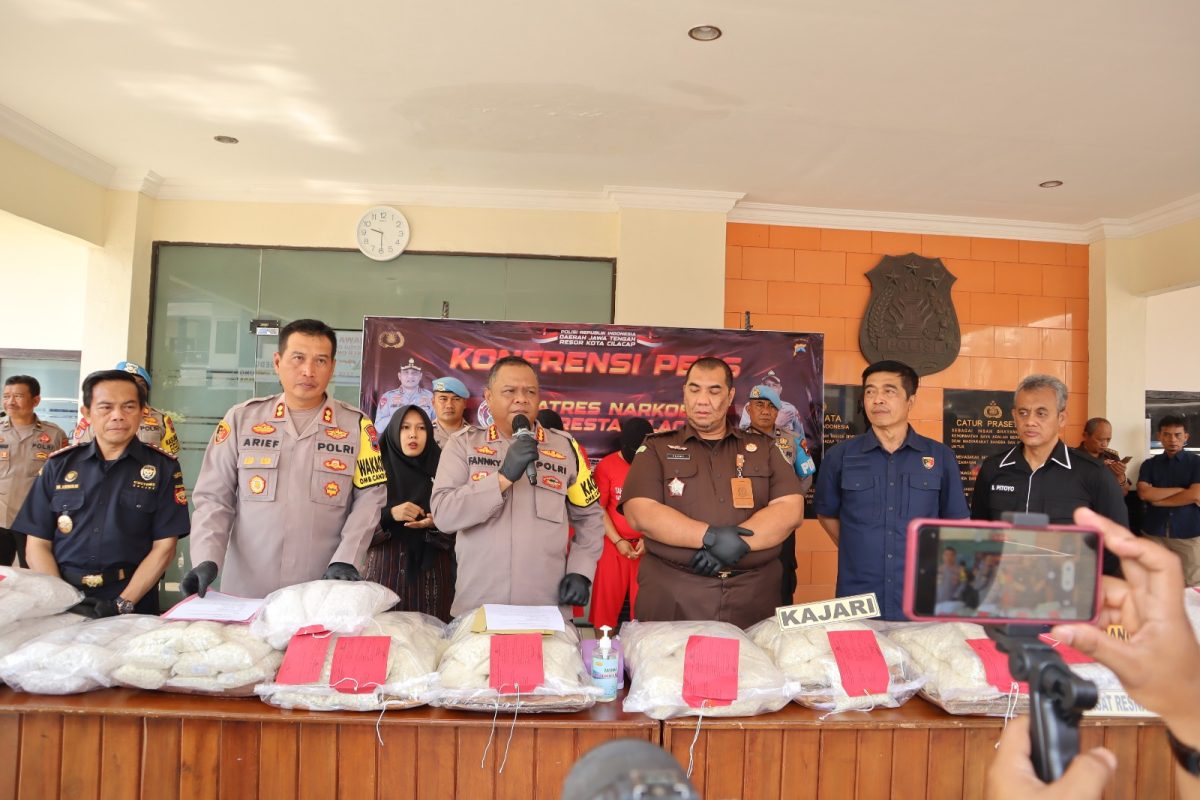 “Kami bekerjasama dengan bea cukai berhasil mengamankan barang bukti sebanyak 320 ribu pil dan ini masuk kedalam golongan 1 narkotika” Ujar Kapolresta Cilacap Kombes Pol Fannky Ani Sugiharto, SIK., MSi