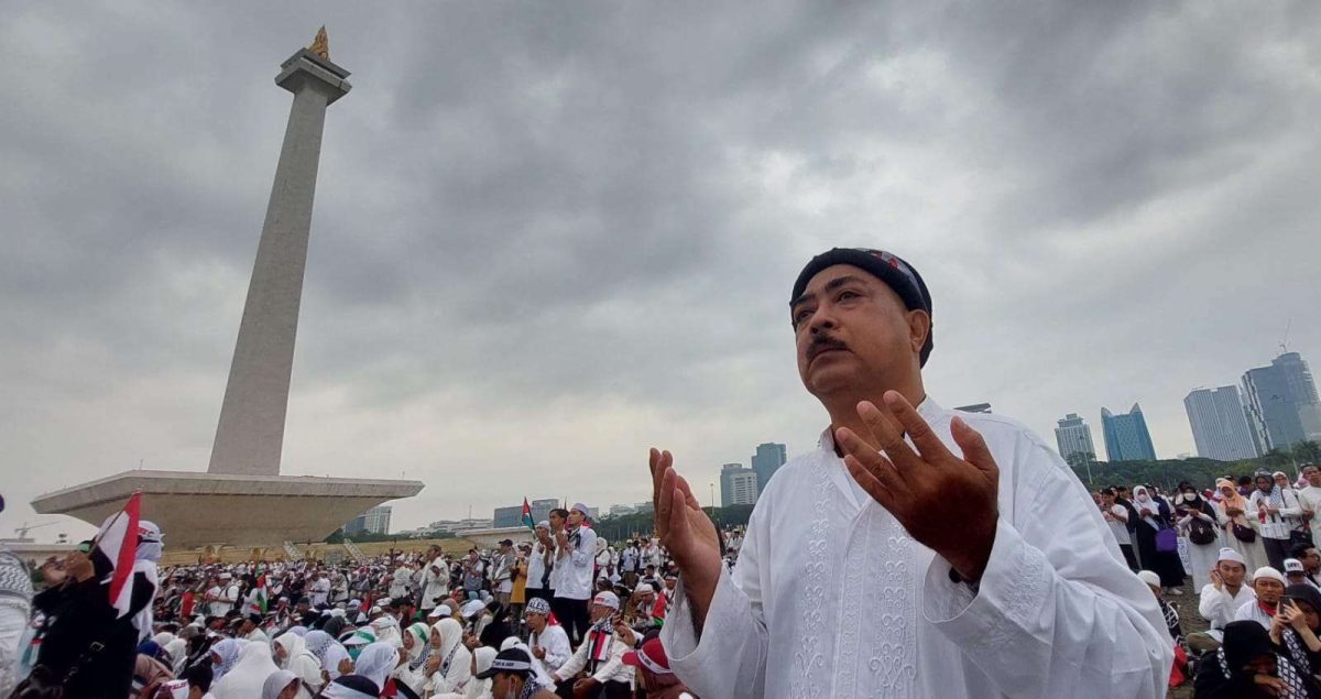 Sekitar ribuan peserta aksi damai bela Palestina memadati kawasan Monas, Jakarta Pusat, Minggu (5/11/2023). Kegiatan yang diinisiasi oleh Majelis Ulama Indonesia (MUI) juga dipenuhi kalangan remaja hingga anak-anak.