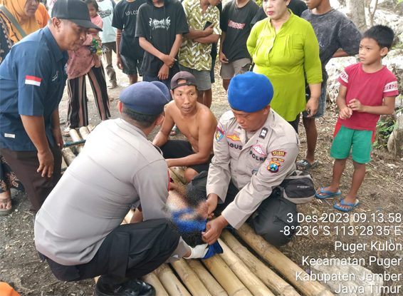 Pada hari Minggu tanggal 03/12/2023 sekitar pukul 09.30 wib anggota Satpolairud Polres Jember menerima laporan adanya kecelakaan laut dan langsung mendatangi Tempat Kejadian Perkara (TKP).