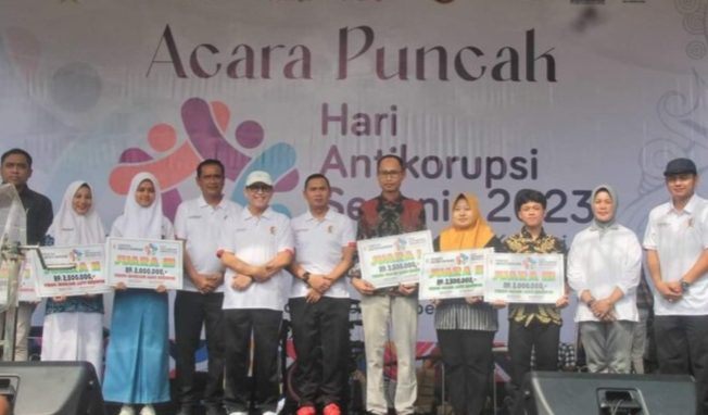 Rangkaian peringatan Hari Anti Korupsi Sedunia (Hakordia) di Kabupaten Bojonegoro berlangsung meriah, Sabtu (9/12/2023) pagi. Berbagai kegiatan ikut menyemarakkan acara dipusatkan di alun-alun Bojonegoro tersebut. Mulai dari jalan sehat, donor darah, cek kesehatan gratis, hingga pengumuman pemenang dan penyerahan hadiah lomba video dan poster Hakordia.