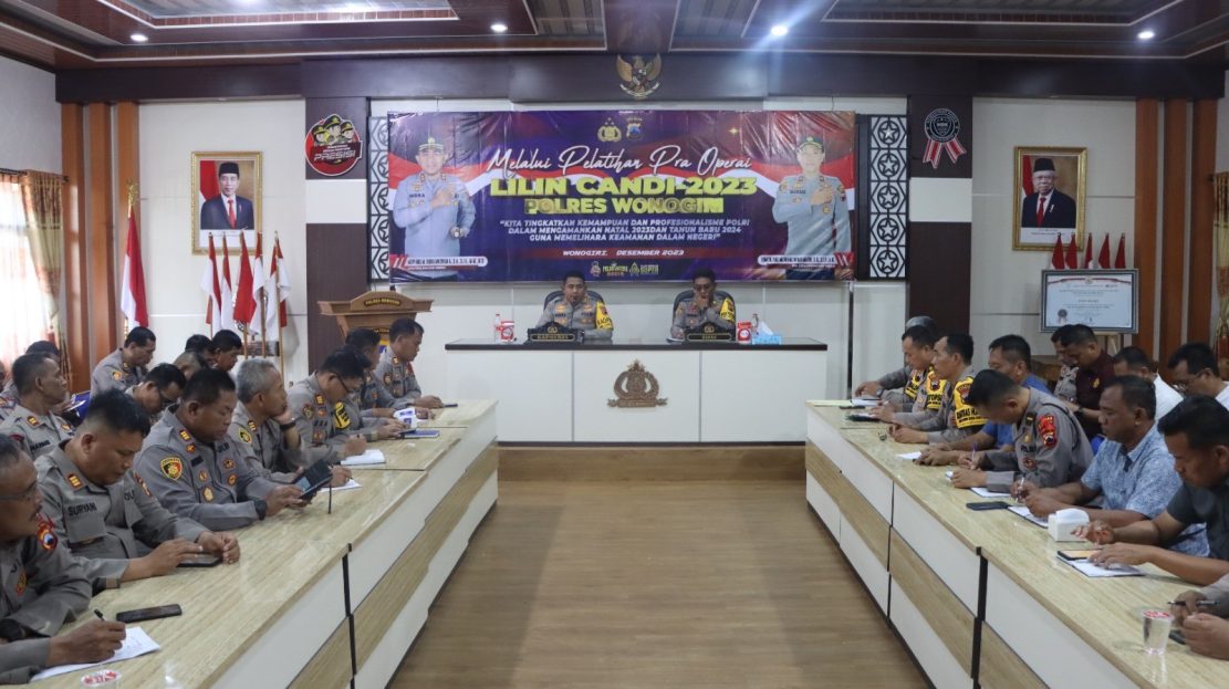 Kapolres Wonogiri Polda Jawa Tengah, AKBP Andi M. Indra Waspada Amirullah, SH., SIK., MM., MH., memberikan arahan kepada Pejabat Utama (PJU), Kapolsek dan seluruh perwira pelaksanaan Kegiatan Rutin Yang Ditingkatkan (KRYD) Operasi Knalpot Brong di Aula Mapolres Wonogiri. (2/1/24).
