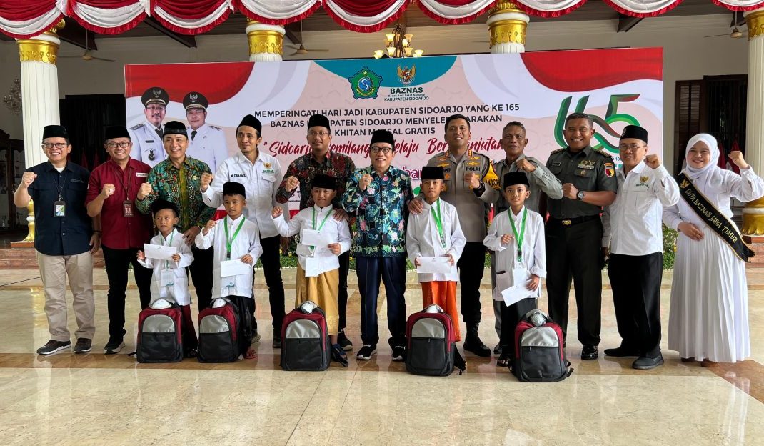 Pemerintah Kabupaten Sidoarjo melalui Baznas Sidoarjo menggelar Khitan massal gratis yang di gelar dalam rangka memperingati Hari Jadi Sidoarjo ke-165 yang di gelar di Pendopo Delta Wibawa Selasa, (23/01/2024).