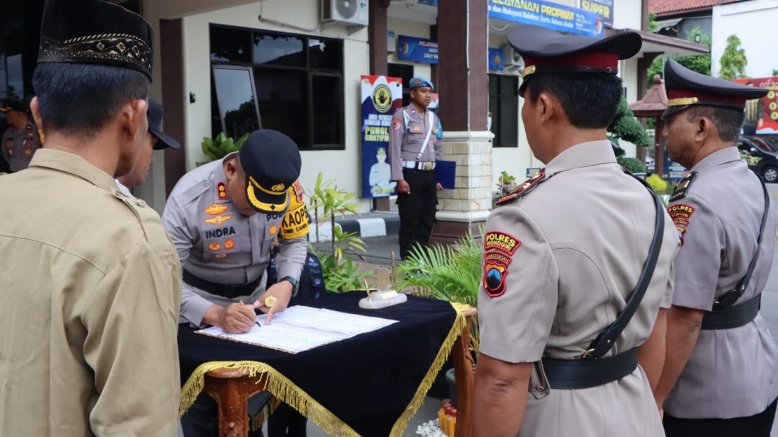 Kapolres Wonogiri AKBP Andi Muhammad Indra Waspada Amirullah, SH., SIK., MM., MSi., memimpin upacara serah terima jabatan (Sertijab) Kasat Intelkam dan kenaikan pangkat pengabdian. Upacara serah terima jabatan berlangsung di halaman Mapolres Wonogiri, Sabtu (3/2/2024) pagi.