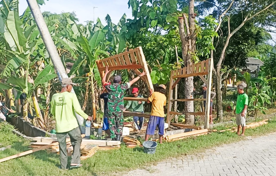 Bersama warga masyarakat Desa Semenkidul, Bintara Pembina Desa atau Babinsa Koramil 21/Sukosewu Kodim 0813 Bojonegoro, Serka Agung Yuwono, gotong-royong mendirikan bangunan Pos Keamanan Lingkungan (Poskamling) tepatnya di Dusun Kedungdowo RT.005 RW.002 Desa Semenkidul Kecamatan Sukosewu Kabupaten Bojonegoro, Selasa (5/3/2024).