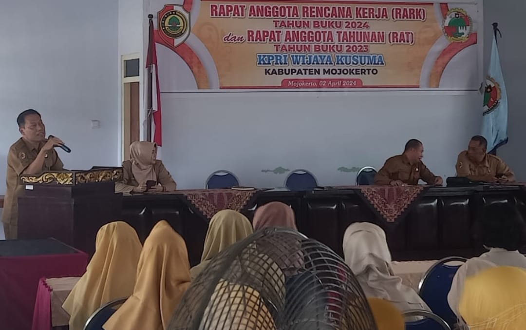 Bertempat di Gedung Dewan Koperasi Indonesia Daerah (Dekopinda) Kabupaten Mojokerto Jalan Raya Jabon Kecamatan Mojanyar, Selasa ( 02 / 04 / 2024 ) telah digelar acara Rapat Anggota Rencana Kerja ( RARK ) Tahun Buku 2024 dan Rapat Anggota Tahunan ( RAT ) Tahun Buku 2023 Koperasi Pegawai Republik Indonesia ( KPRI ) Wijaya Kusuma Kabupaten Mojokerto.