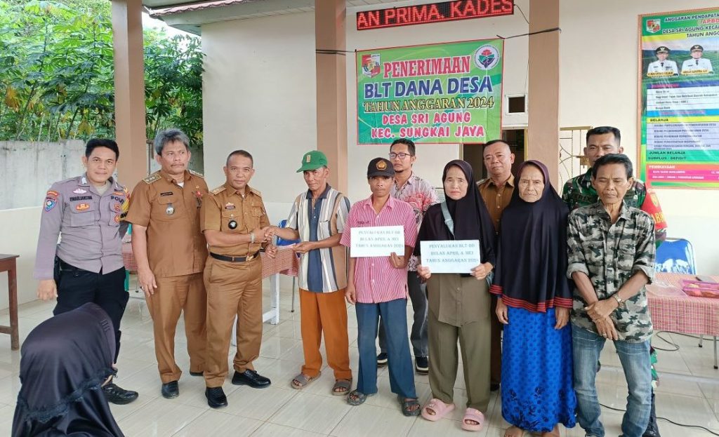 Pemerintah Desa ( Pemdes ) Sri Agung, Kecamatan Sungkai Jaya, Kabupaten Lampung Utara, salurkan Bantuan Langsung Tunai Dana Desa (BLT- DD) Tahap II, bulan April dan Mei, tahun Anggaran 2024 kepada 39 Keluarga Penerima Manfaat (KPM), bertujuan untuk membantu keluarga penerima manfaat (KPM) yang terdampak ekonomi.