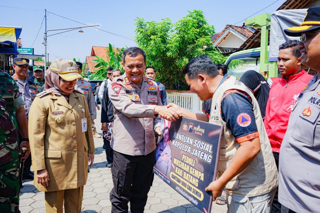 Sebagai upaya pemulihan pasca musibah gempa di Kab. Batang, Polda Jawa Tengah kerahkan berbagai bantuan, diantaranya pendirian Dapur umum, perbaikan rumah dan trauma healing untuk memulihkan kondisi psikologis masyarakat. Hal itu disampaikan Kapolda Jateng Irjen Pol Ahmad Luthfi saat meninjau lokasi bencana pada Senin, (8/7/2024) siang. Dirinya turut prihatin atas musibah gempa pada Minggu (7/7/2024) siang kemarin yang mengakibatkan 76 rumah warga mengalami kerusakan dan 10 warga mengalami luka luka.