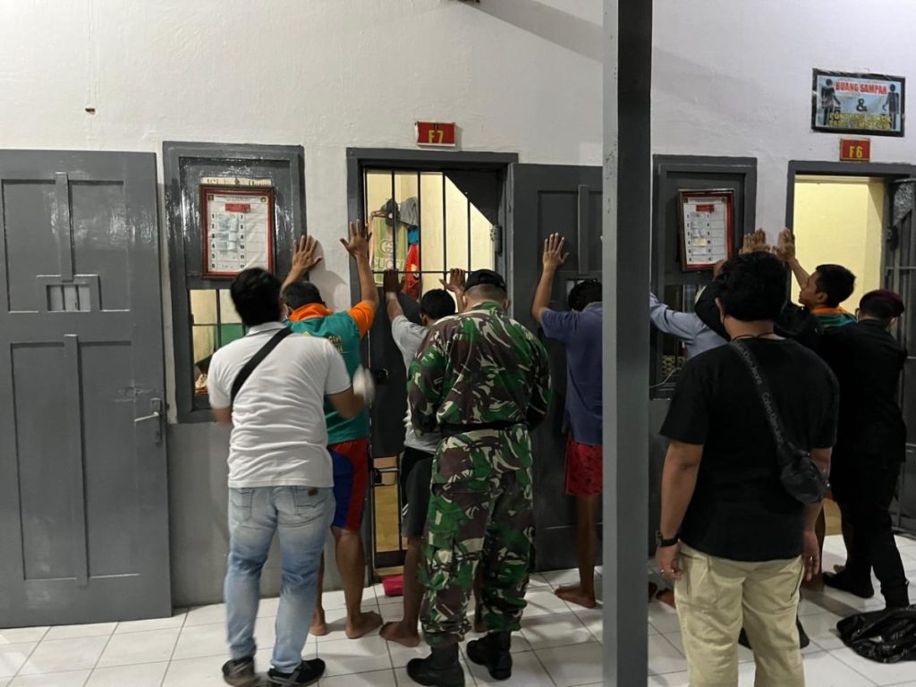 Satu per satu warga binaan diperiksa, petugas juga menggeledah kamar dari mulai tempat tidur, WC, hingga lemari dan pakaian-pakaian yang tergantung.